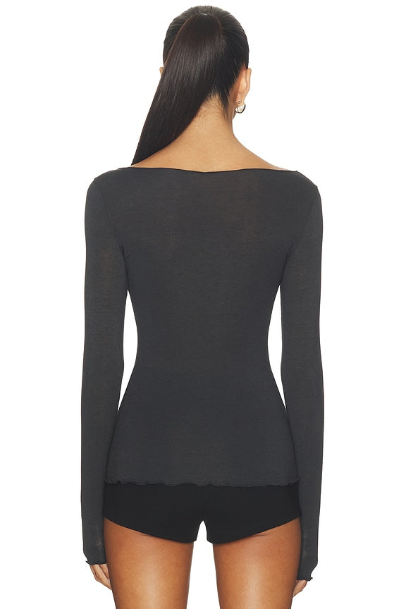 Skims Sheer Modal Long Sleeve Top in Onyx